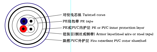 煤礦用聚氯乙烯絕緣細(xì)圓鋼絲鎧裝阻燃聚氯乙烯護(hù)套電話電纜 PVC insulated fine round steel wire armored fire retardant PVC sheathed telephone cables for use in mines |