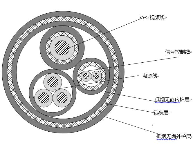 產(chǎn)品規(guī)格:3芯(1~2.5MM2)電源線, 2芯(0.5~1MM2)屏蔽型信號(hào)控制線,1芯SYV-75-5視頻線
