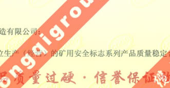 礦用安全標志系列產品質量穩(wěn)定合格證書