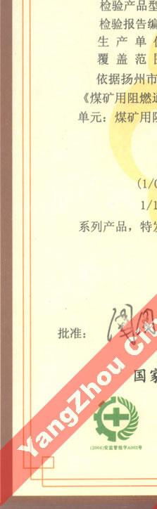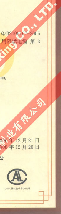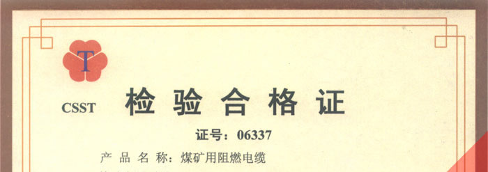 國家采煤機(jī)械質(zhì)量監(jiān)督檢驗(yàn)中心檢驗(yàn)合格證--煤礦用阻燃電纜(MHYV,MHYVP)