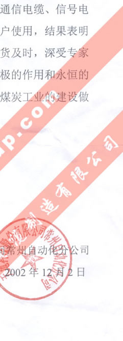 天地科技股份有限公司常州自動(dòng)化分公司評(píng)價(jià)我公司產(chǎn)品質(zhì)量穩(wěn)定、性能可靠、服務(wù)周到、交貨及時(shí)、深受專家和領(lǐng)導(dǎo)好評(píng)的函
