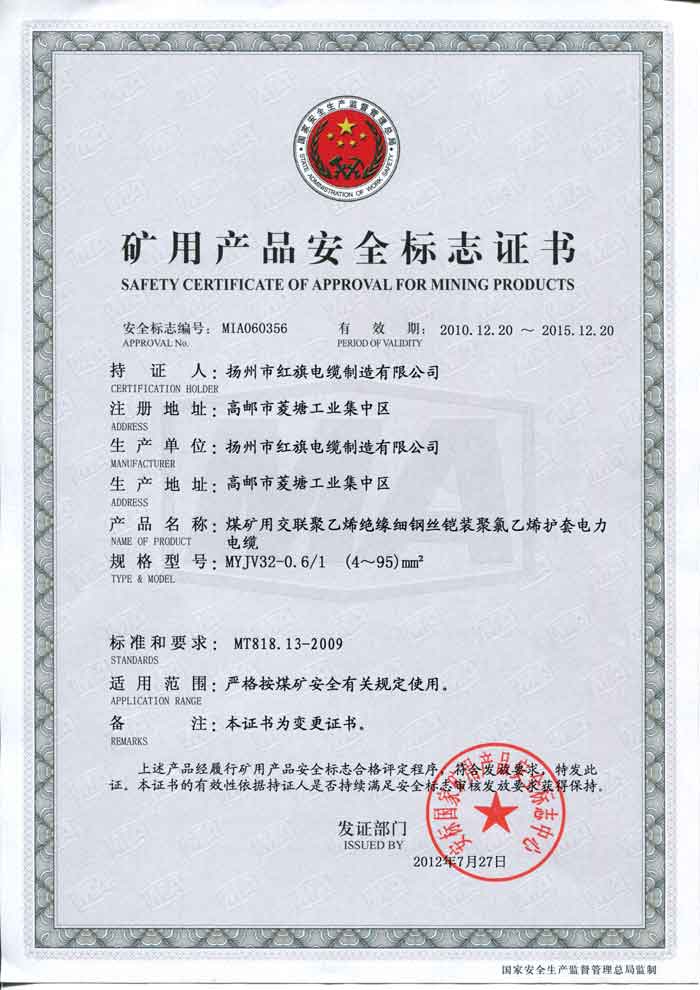 煤礦礦用產(chǎn)品安全標(biāo)志證書-MYJV32