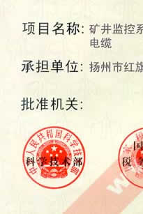 國家重點(diǎn)新產(chǎn)品證書(礦井監(jiān)控系統(tǒng)用本安型無鹵低煙屏蔽信號(hào)電纜)