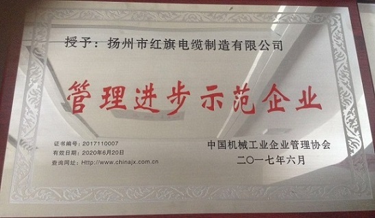 機械工業(yè)現(xiàn)代化企業(yè)管理示范工程(簡稱示范工程)是由中國機械工業(yè)企業(yè)管理協(xié)會具體實施,推動全行業(yè)企業(yè)管理進步的品牌工程。現(xiàn)代化管理企業(yè)、管理進步示范企業(yè)、管理基礎規(guī)范達標企業(yè)的評價表彰工作,是示范工程的重要內(nèi)容。為推動企業(yè)管理進步,促進行業(yè)持續(xù)發(fā)展,近日,經(jīng)領導小組審批,授予揚州市紅旗電纜制造公司(原揚州市紅旗電纜廠)等23家企業(yè)“2016年機械工業(yè)管理進步示范企業(yè)”稱號。